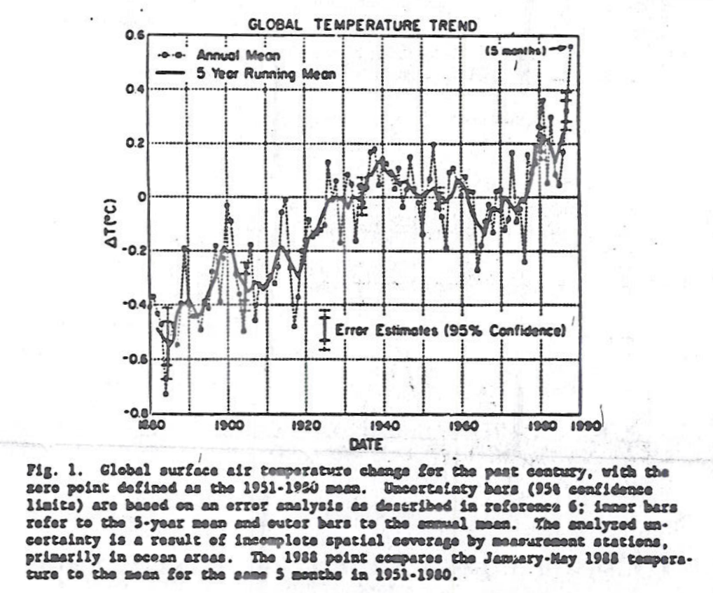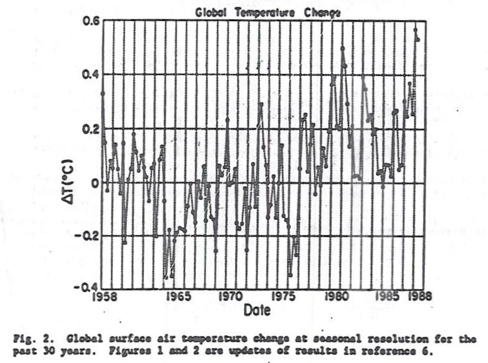 On June 23, 1988, James Hansen of the NASA Goddard Space Institute gave testimony to the U.S. Senate Committee on Energy and Natural Resources.