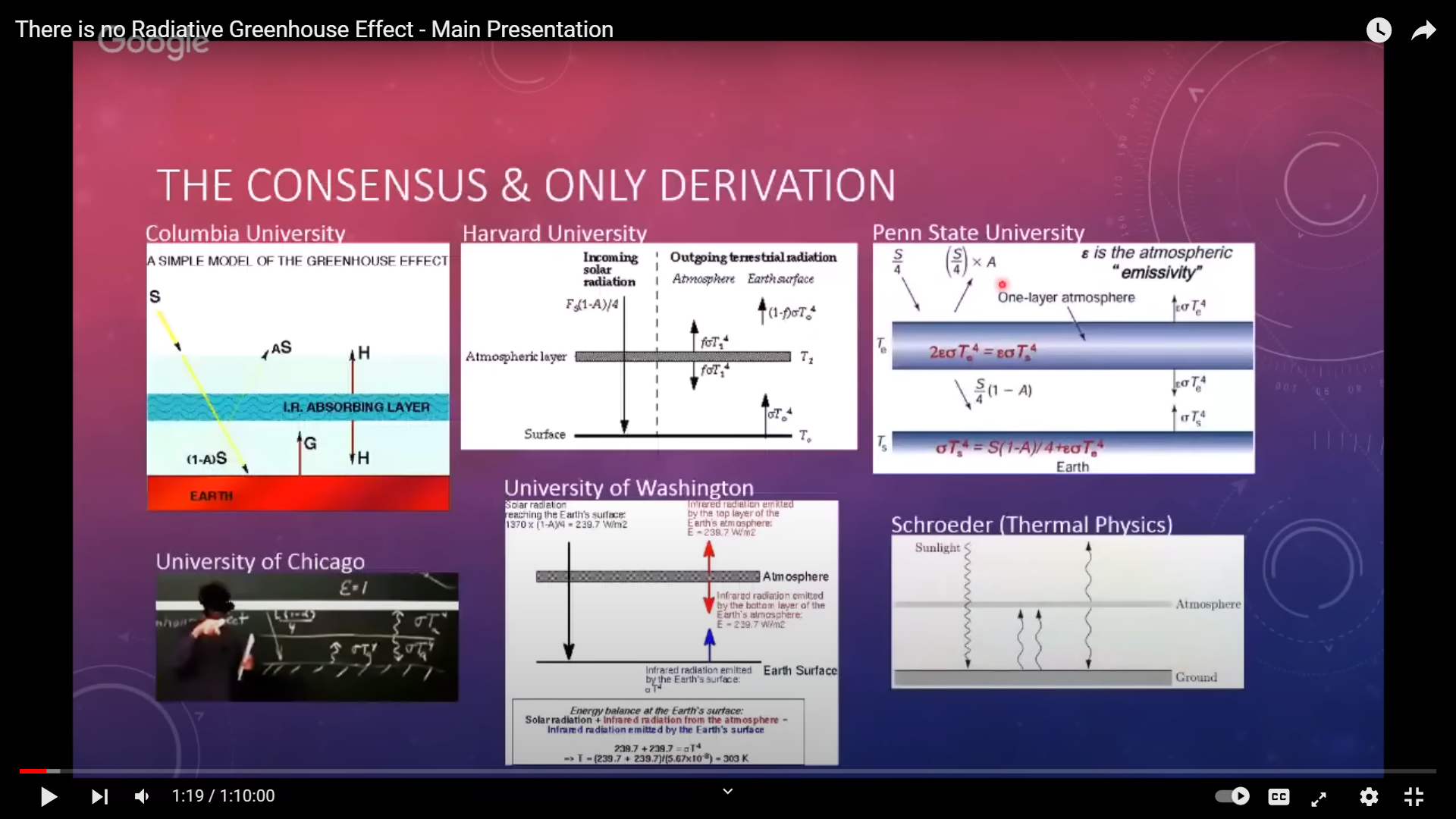 2:00 "[these diagrams are] the consensus and the only derivation of where the greenhouse effect comes from."