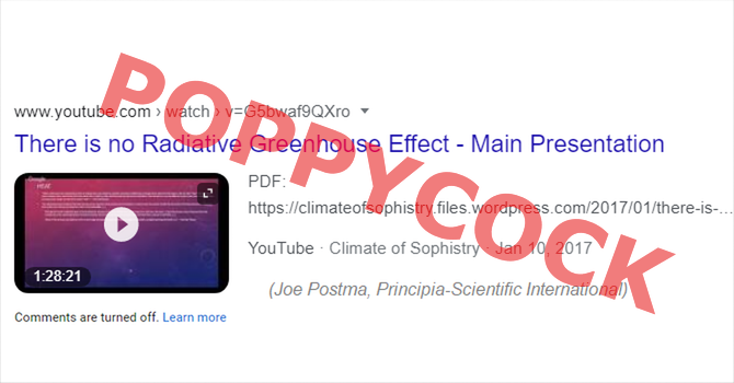I tried to watch one of those Joe Postma videos, the one entitled, "There is no Radiative Greenhouse Effect - Main Presentation." It's 70 minutes long on YouTube. I made it through 17½ minutes before I couldn't endure any more.