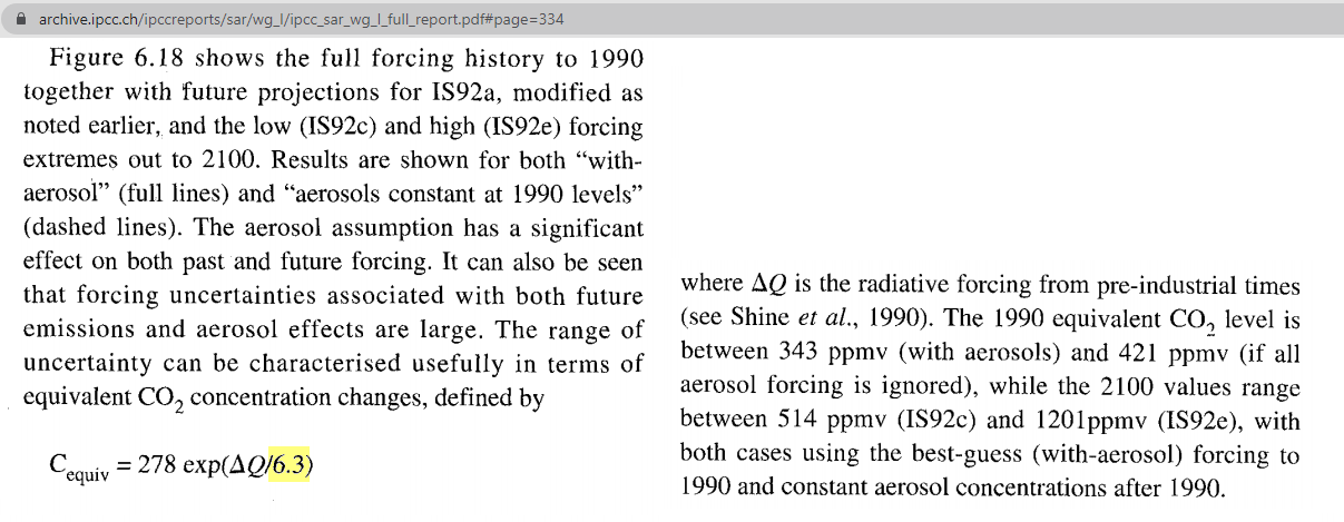𝞪 = 6.3 (which is ERF=4.4 W/m² per doubling)