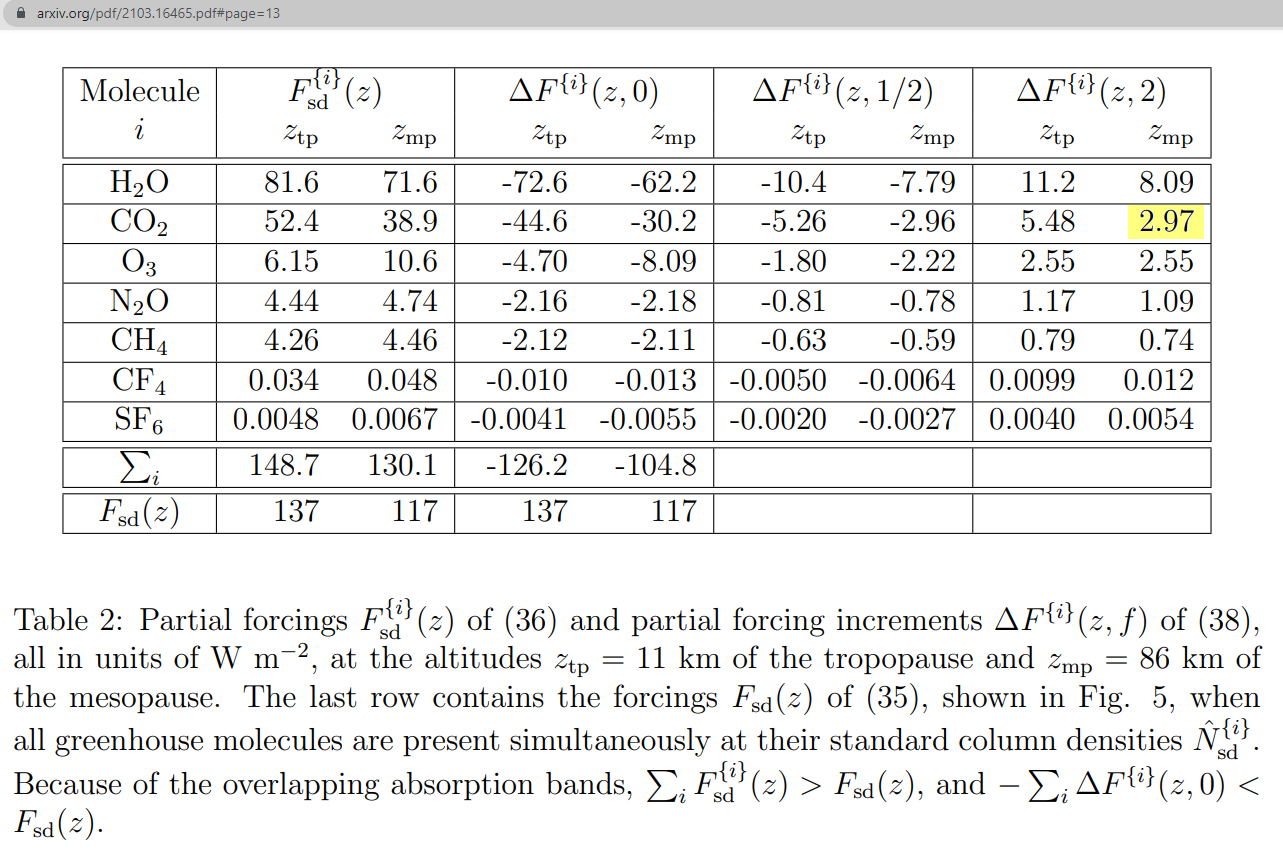 2.97 W/m² per doubling (see their Table 2