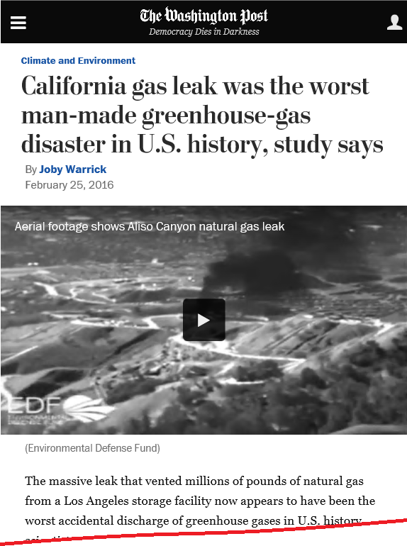 On Thursday, Feb. 25, The Washington Post headline blared: “California gas leak was the worst man-made greenhouse-gas disaster in U.S. history.”
