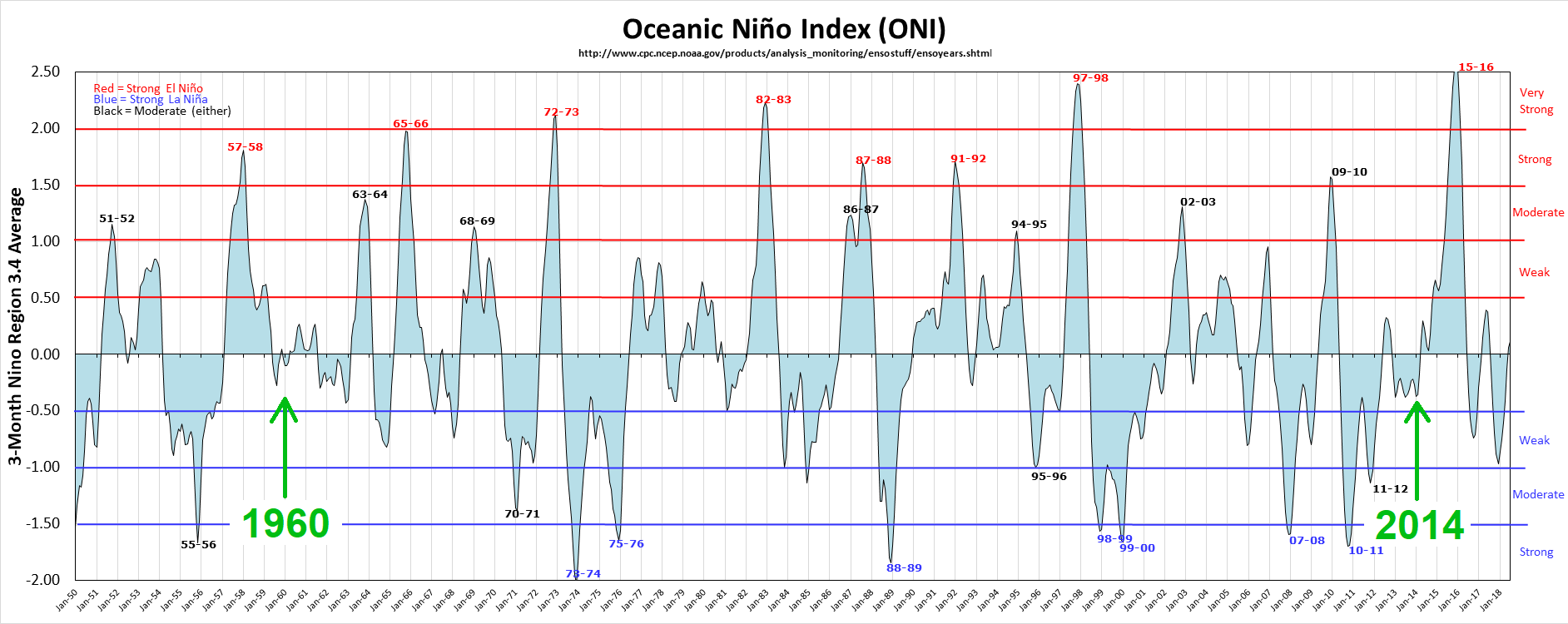 ENSO graph for this period (showing how the 1960 & 2014 starting & ending dates were chosen to avoid major ENSO spikes).