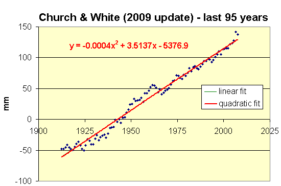 In Church & White's oft-cited 2006 paper, they claimed to have detected, “A 20th century acceleration in global sea-level rise.” (That was the title of their paper.)