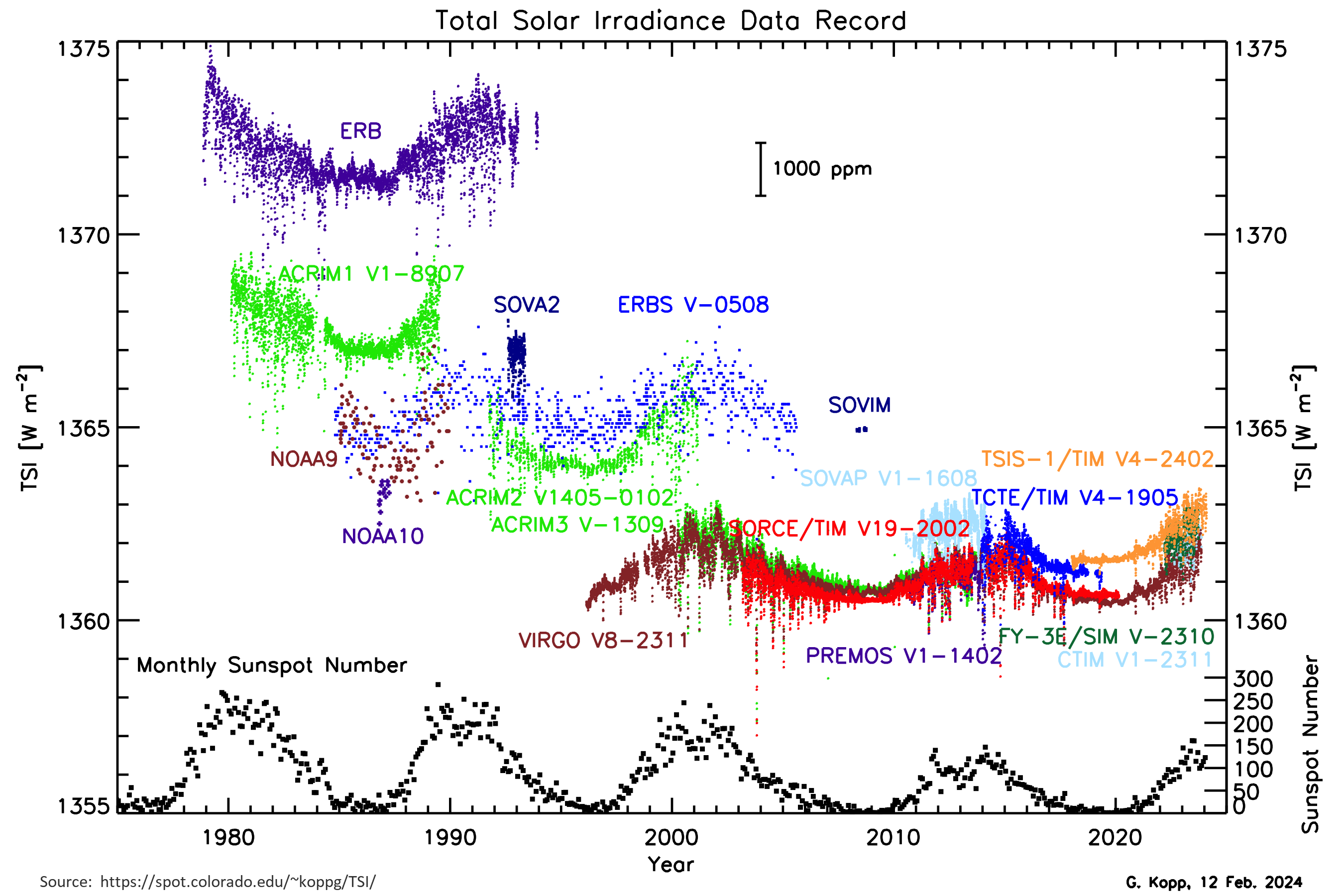 - NASA's Earth Radiation Budget satellite mission measured TSI (among other things). ↑