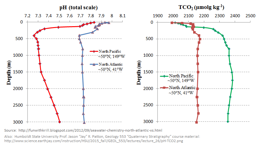 The equilibrated ratio of atmospheric CO2 partial pressure to dissolved CO2 concentration in water is governed by solubility, which varies with temperature and salinity. The solubility of gases like CO2 (or CH4) in water decreases as the water warms, according to the temperature dependence of Henry's law. The capacity of the water to hold dissolved CO2 decreases by about 3-4% per 1°C that the water warms. For details see this technical note from Pro-Oceanus Systems Inc. ↑