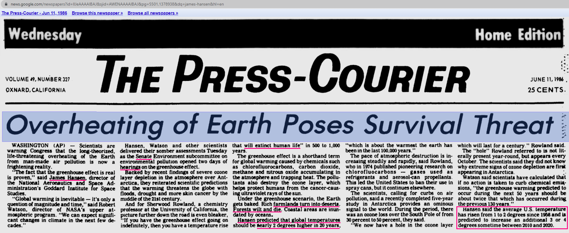 Here's the transcript of Dr. Hansen's 6/23/1988 Congressional testimony,
