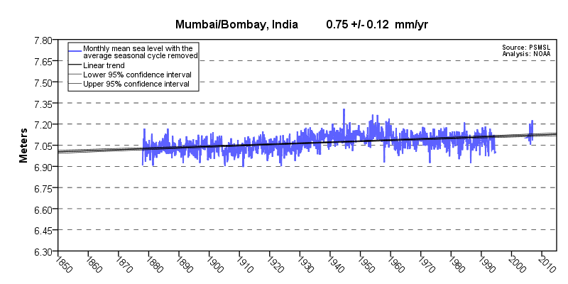 Sea level at Mumbai, India, showing linear trend
