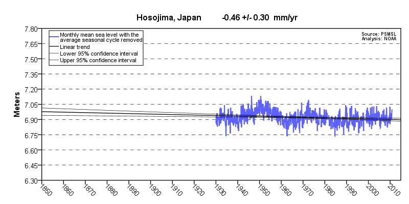 Sea level at Hosojima, Japan, showing linear trend