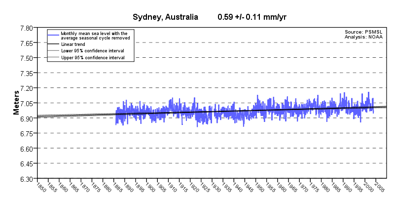 Sea level at Sydney, Australia, showing linear trend