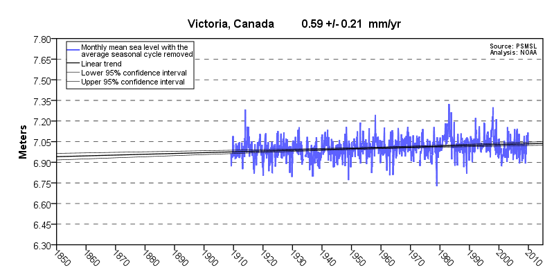 Sea level at Victoria, BC, Canada, showing linear trend