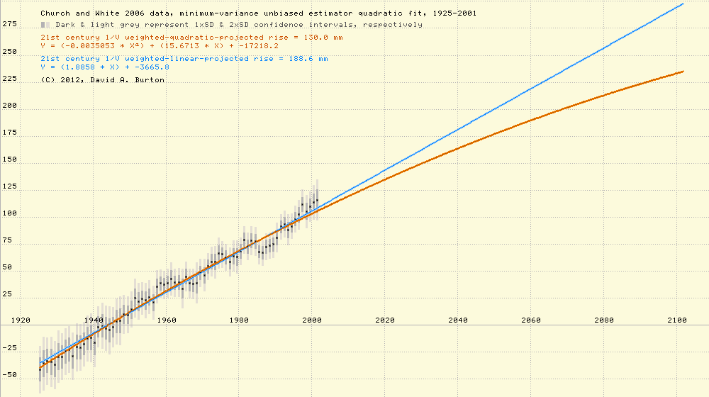 Church & White 2006 data, 1925-2001, minimum-variance unbiased estimator quadratic fit