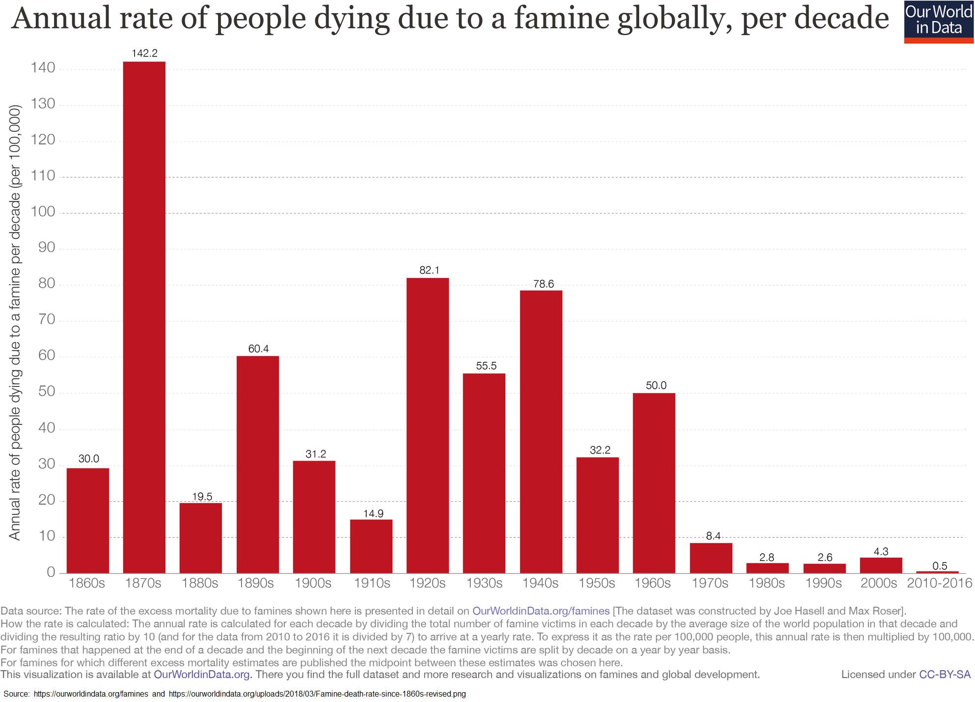 That's a very, very Big Deal. Famine used to be a scourge comparable to war and epidemic. For comparison: COVID-19 has killed about 0.1% of the world's population (so far), WWII killed 2.7% of the world's population, and the catastrophic 1918 flu pandemic killed about 2%. But the nearly-worldwide drought and famine of 1876-78 killed about 3.7% of the world's population!