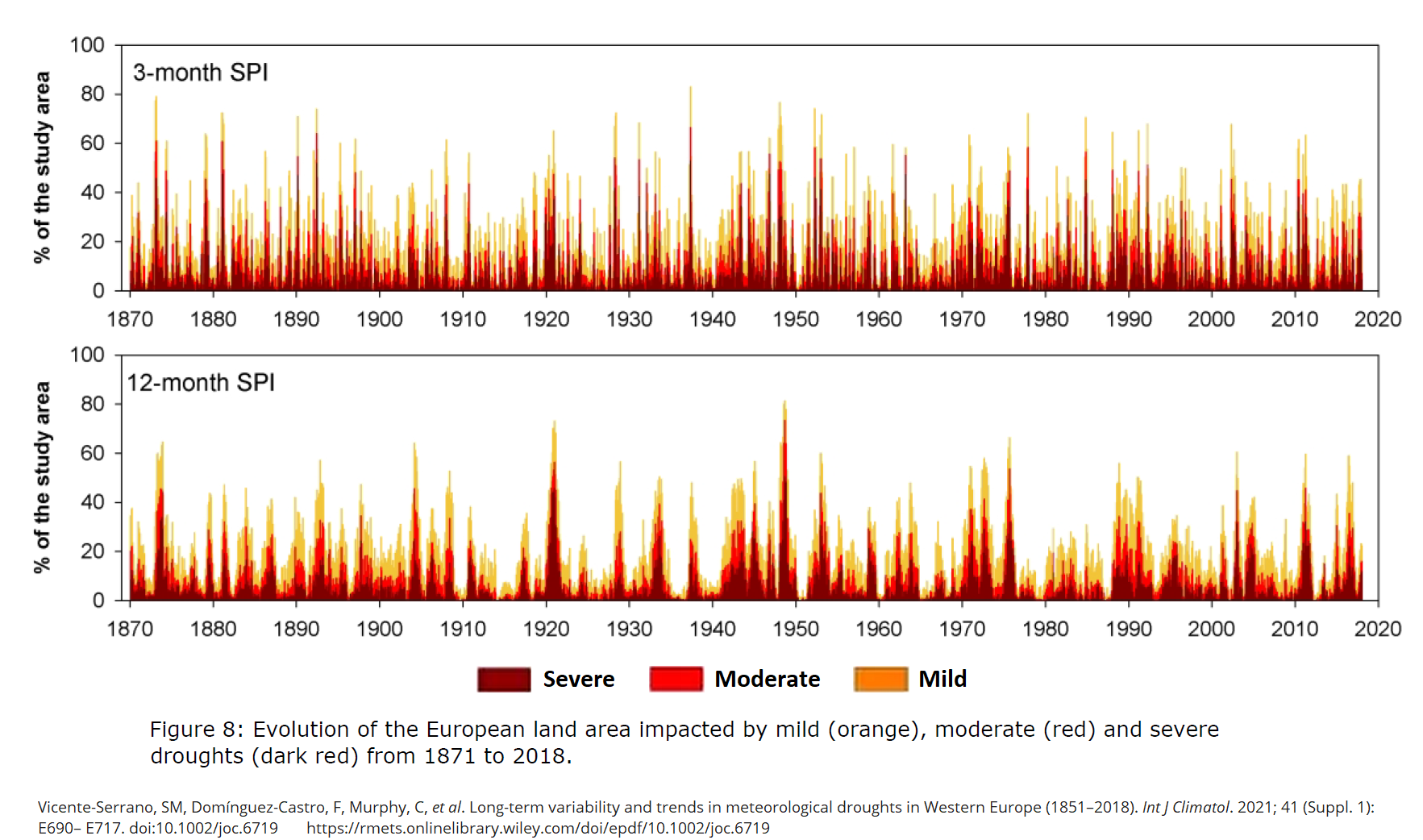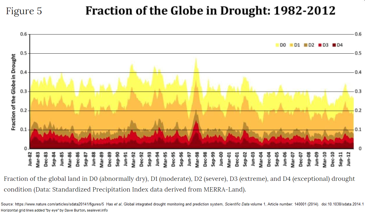 Droughts are not worsening (and drought impacts are decreasing):  Droughts