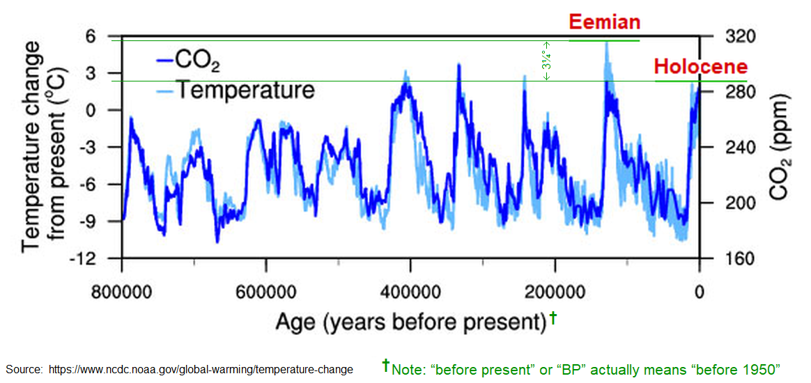 Current temperatures are not unprecedented:  Eemian vs. Holocene temperatures