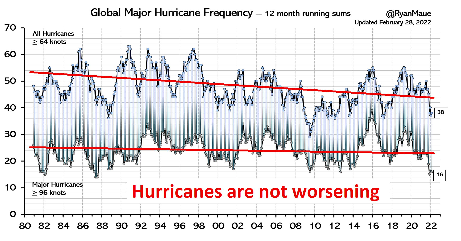 Hurricanes & tropical cyclones are not worsening Hurricane frequency