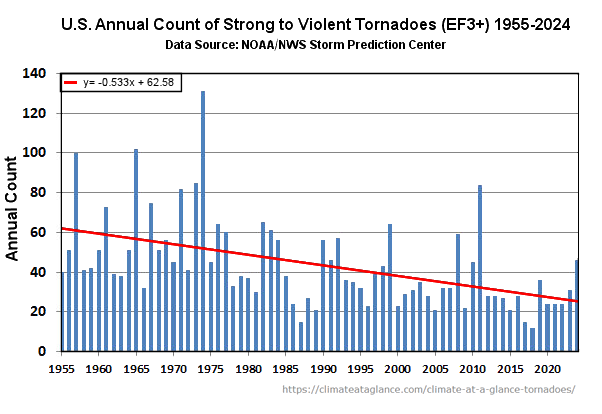 27. WoodTV: Strong to Violent Tornadoes in the U.S. Trending Downward, by meteorologist Bill Steffen (graph).